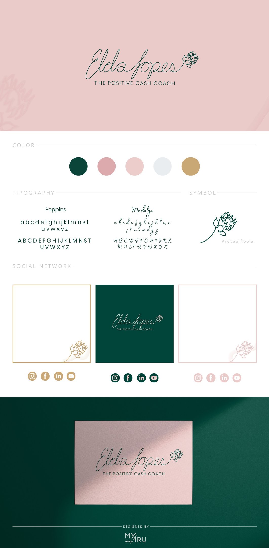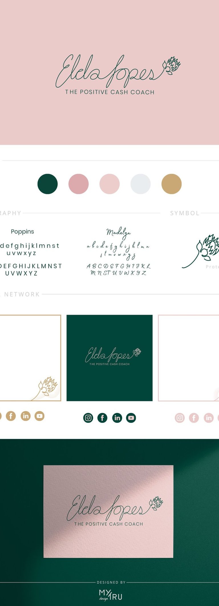 Elda wanted her brand to be feminine and personal, which is why the logo features her favorite plant, the Protea, symbolizing growth and resilience. This makes the brand stand out with a personalized approach to financial coaching.