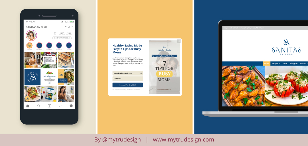 Here is one of my favorite before-and-after logo transformations. Nikki, a coach passionate about food, is the founder of an anti-inflammatory food website called Sanitas by Nikki: